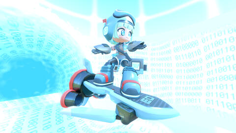 Meiru-03 is a clumsy, yet determined and very hard working e-mail delivery person. They work in the virtual world delivering e-mail as fast as possible, which is easily done surfing the web with their hoverboard. In addition to this job, they are assigned to take down spam mail if they see it along the way. For that task they have a “Spam-B-Gun” to make the spam be gone! Meiru is the freshly appointed leader of a specific high intensity domain, so they’re learning a lot of new tasks along the way. There has also been a lot of virus e-mails lately, which is a lot harder to deal with than spam, so Meiru has a lot do to, and a lot to learn!