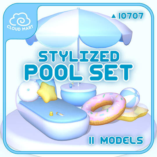 This is a set I created to use in VRchat worlds and games. It is inspired by the style of "The Virtual City of Cloud 9", and is also displayed in the VRChat world by the pool.